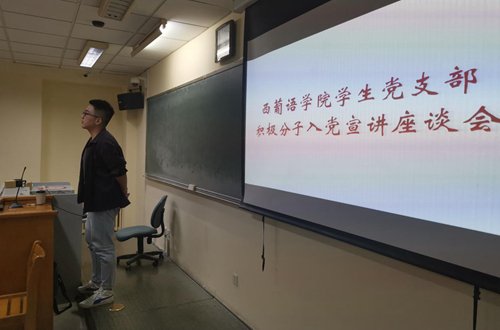 本次宣讲会是支部党员发展工作的重要组成部分,也是西葡语学院学生支部开展“不忘初心、牢记使命”主题教育的系列活动之一。宣讲会上,学生支部委员会的代表以及党员代表不仅解答了积极分子关心的问题,而且激励新生们向党靠拢的决心,调动了全院学生的入党积极性,是一项现实意义和思想教育意义兼备的活动。