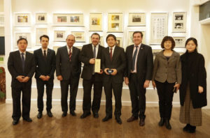 4月10日下午,乌拉圭中央银行行长马里奥•贝尔加拉(Mario Bergara)在乌拉圭驻华大使费尔南多•卢格里斯(Fernando Lugris)、乌拉圭央行副行长乔治•加马拉(Jorge Gamarra)的陪同下访问pg国际电子官网,并作专题讲座。校长彭龙会见了贝尔加拉一行。